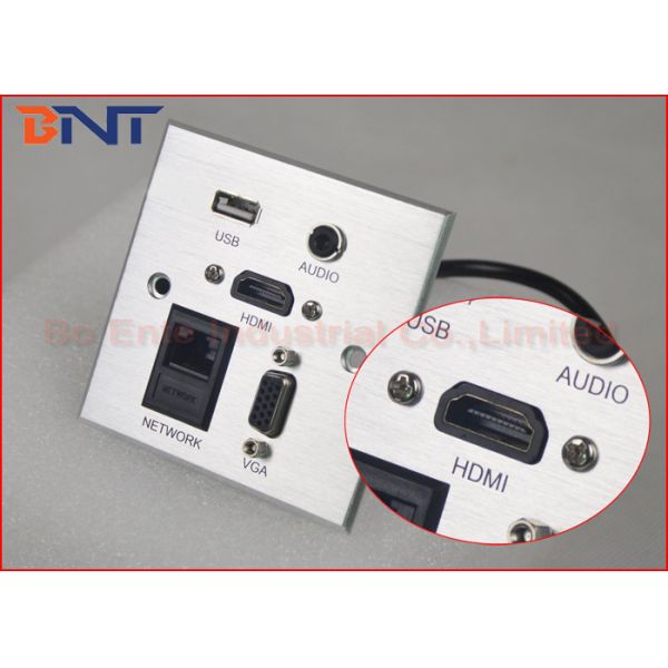 Aluminum Alloy Brushed Multi-functional Hotel AV Wall Mount Socket Plates with HDMI / VGA