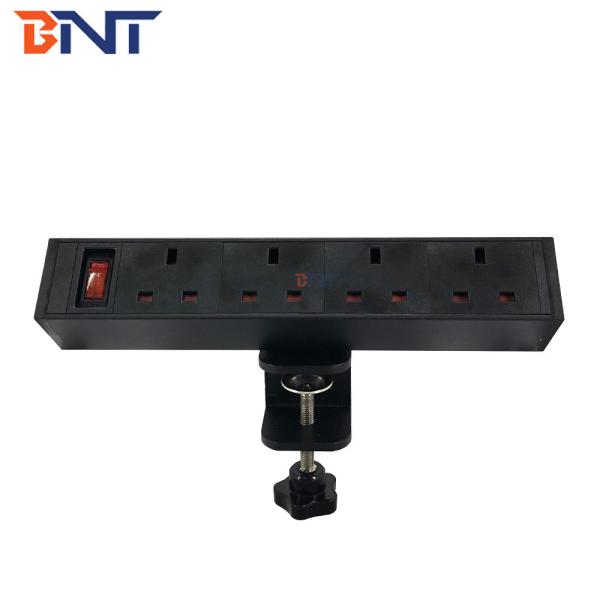 BCS-306S is designed as a clamp on desk socket with 4*UK power+1*Power Switch port. The configuration of the clamp socket could be customized as per customer's different requirement by the modular design.