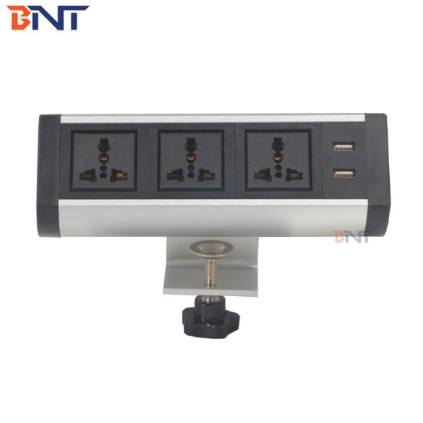BTS series desktop socket is a movable table socket , it fixing on the desk by the bracket.Available for 15mm-35mm desk thickness, the socket is to clamp on the desk edge to use.No need to cut a hole for installation, and users could fix the socket on different location they want.Various configurations available for replacement as per requirement, such as HDMI, VGA, audio, USB charger, etc.Supply for modern office multimedia conference system, conference room, training room, etc