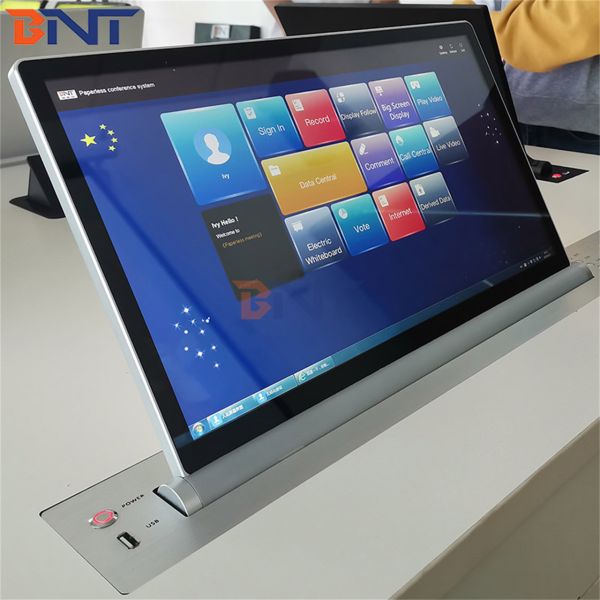 conference system 15.6 inch Motorized Pop up LCD Monitor Lift Customized Size 17~24 Inch Computer Screen Images |