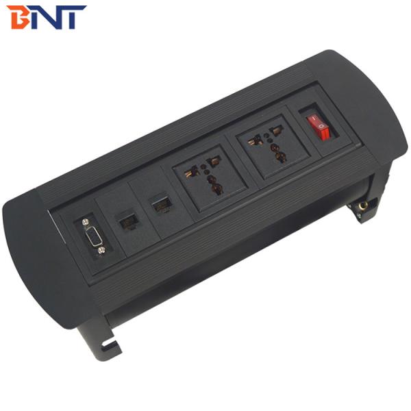 This tabletop hidden rotatable power socket is widely used for the high-class chairman room table, high-tier office table, conference room table AV solution, hotel room and work training room.