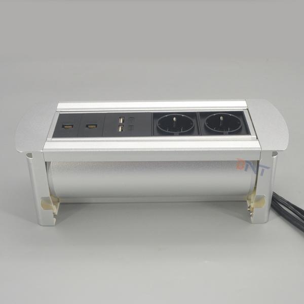 Manual Silver Brushed Aluminum Alloy Table Pop Up Hidden Socket Images |